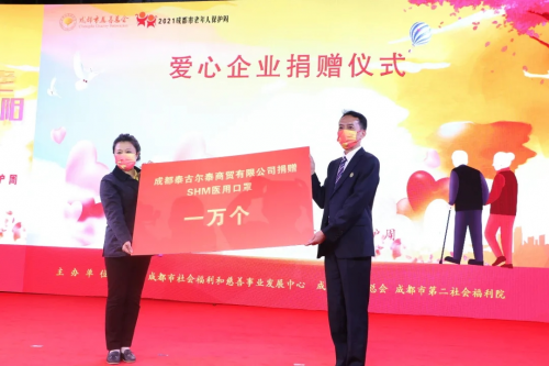 启动仪式现场,爱心企业成都泰古尔泰商贸有限公司向成都市第二社会福利院捐赠了医用口罩一万支。