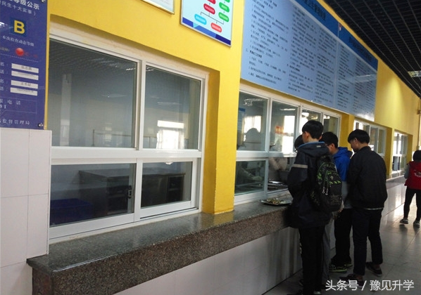 伙食费大概每月420固定餐卡,每月固定充值,不限量吃饭,但不许浪费。学校共设置两个餐厅,分别为第一餐厅和第二餐厅,设有清真窗口。据称是河南省一级食堂,实行营养配餐制,确保学生身体发育健康正常。