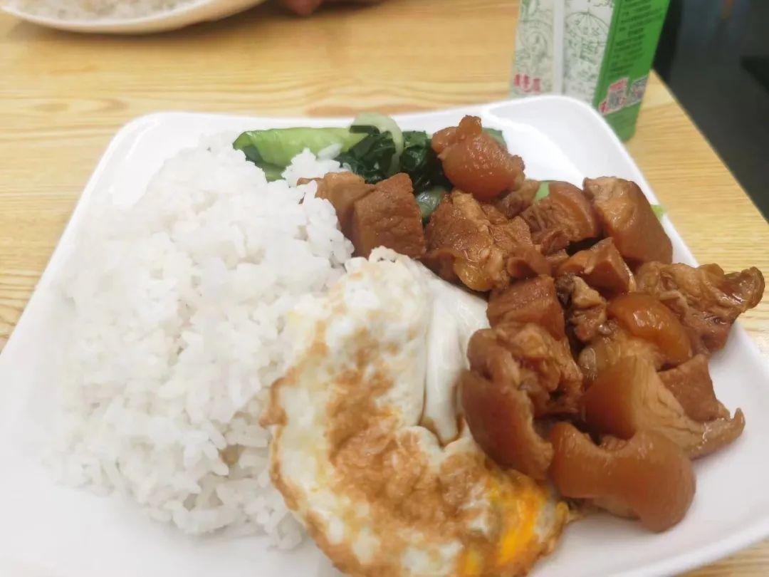 一碗小小的猪脚饭,有菜有肉还有米饭,虽然分量不大,但胜在性价比高——肉卤得入味,饭也是软绵,吃光就很管饱。味蕾填满了,一天的疲惫便尽消。