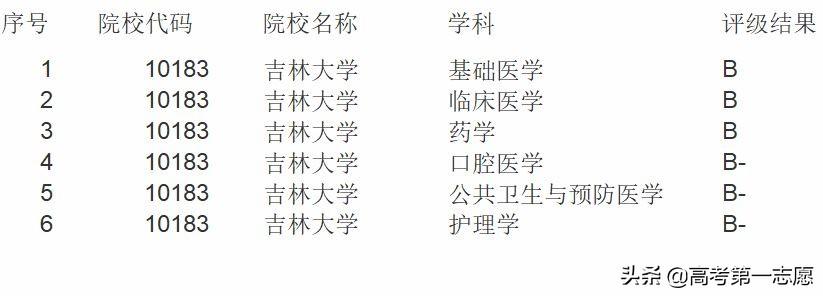 第四轮学科评估,吉林大学白求恩医学部共有6个学科评级上榜,最高评级为B级,但所有学科评级都是B类,没有特别出色的学科,也没有什么短板。