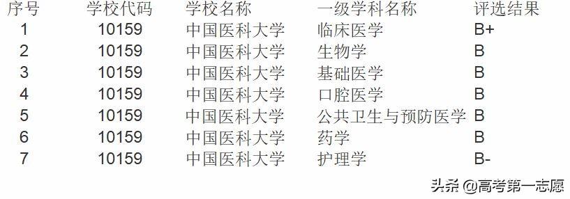 第四轮学科评估结果,中国医科大学有7个学科评级上榜。其中最高评级学科1个B+:临床医学。其他学科评级全都是B类,虽然没有特别突出的学科,但是也没有什么短板的学科。