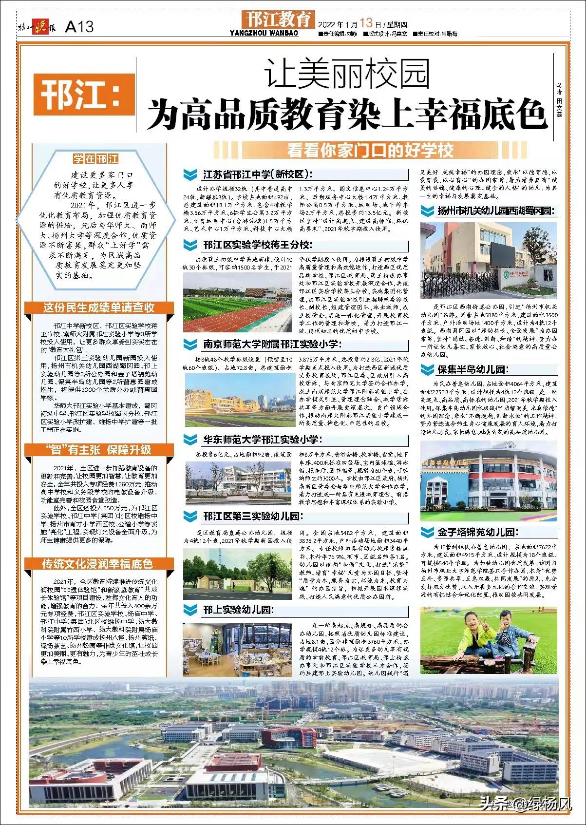 2021年,邗江区进一步优化教育布局,加强优质教育资源的供给,先后与华师大、南师大、扬州大学等深度合作,优质资源不断富集,群众“上好学”需求不断满足,为区域高品质教育发展奠定更加坚实的基础。