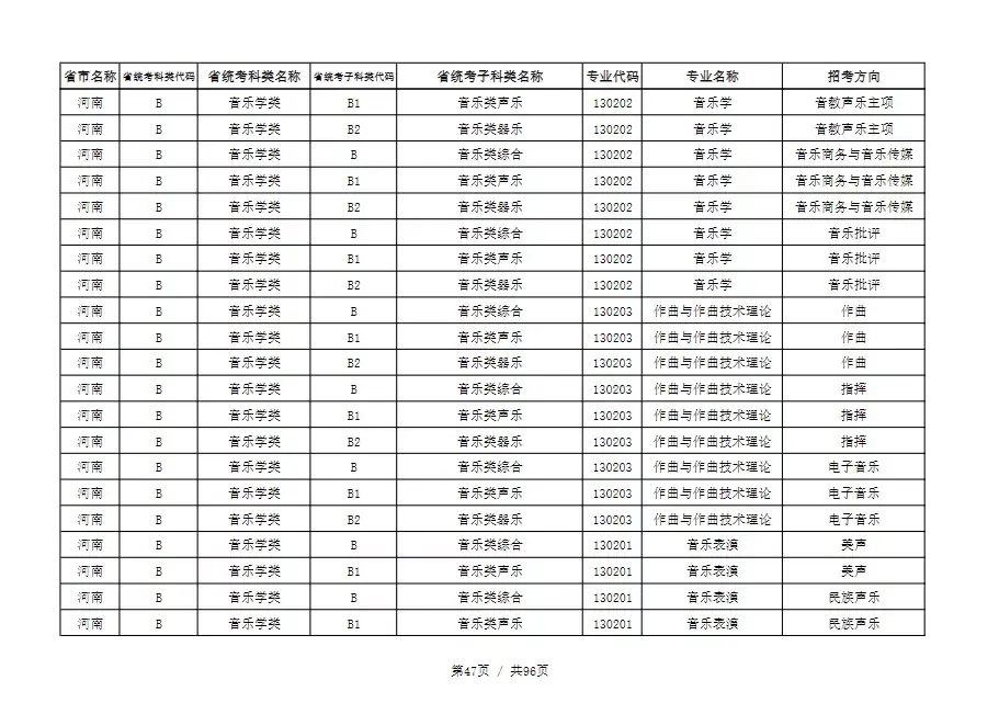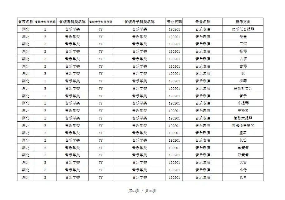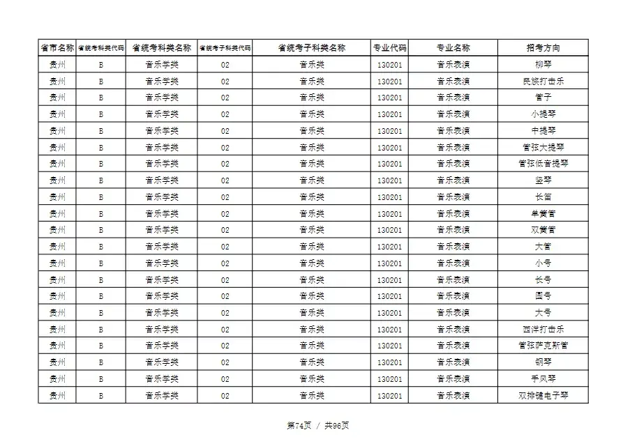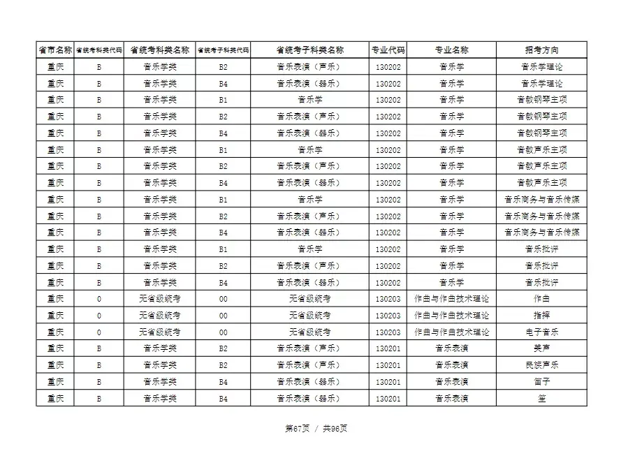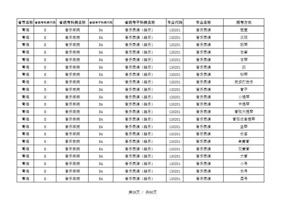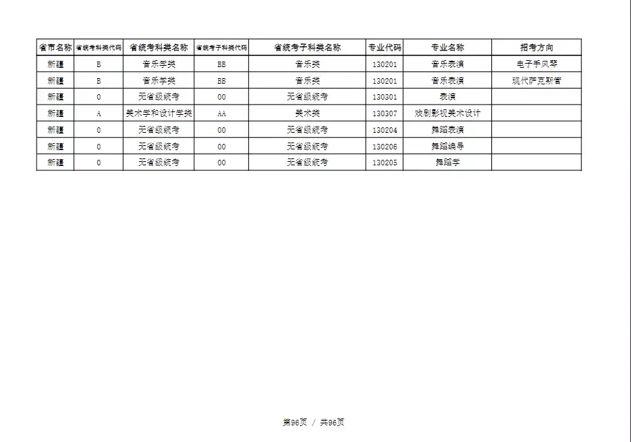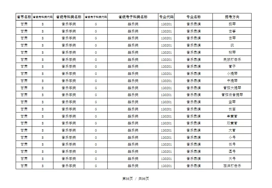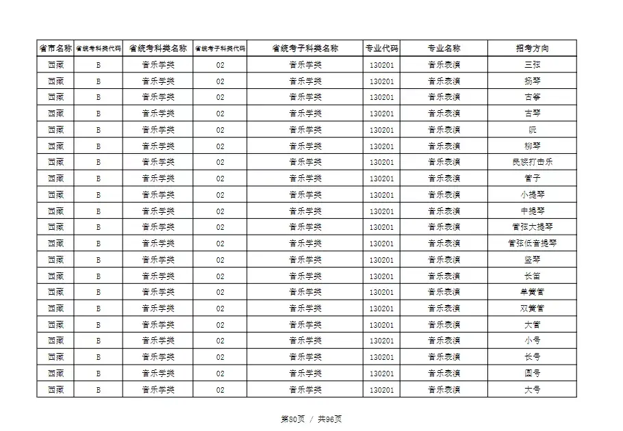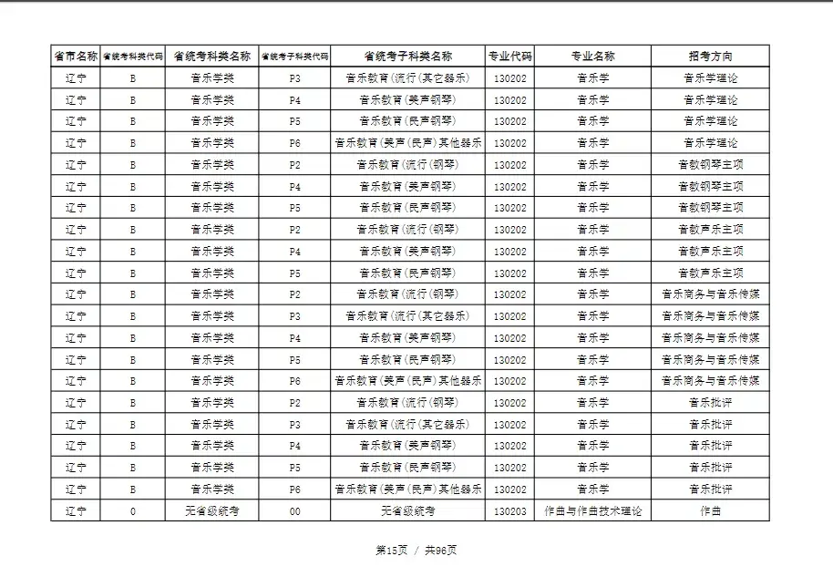 天津音乐学院2022年校考专业与各省统考子科类对照表
