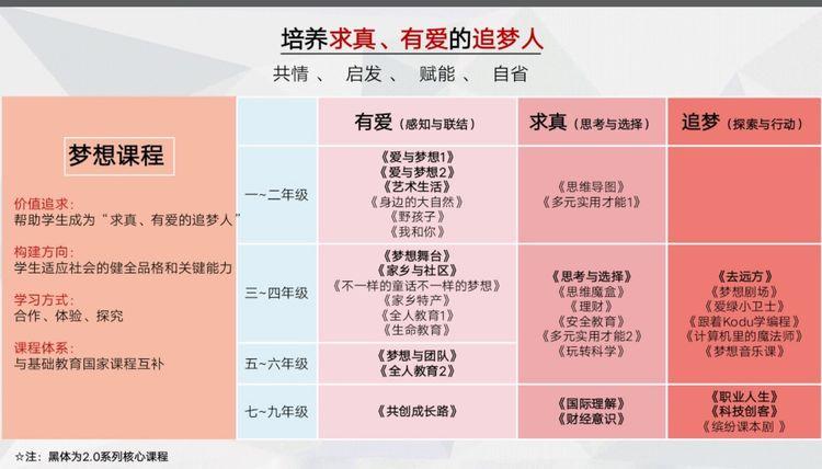 梦想课程,培养“求真、有爱的追梦人”的全人教育课程体系。