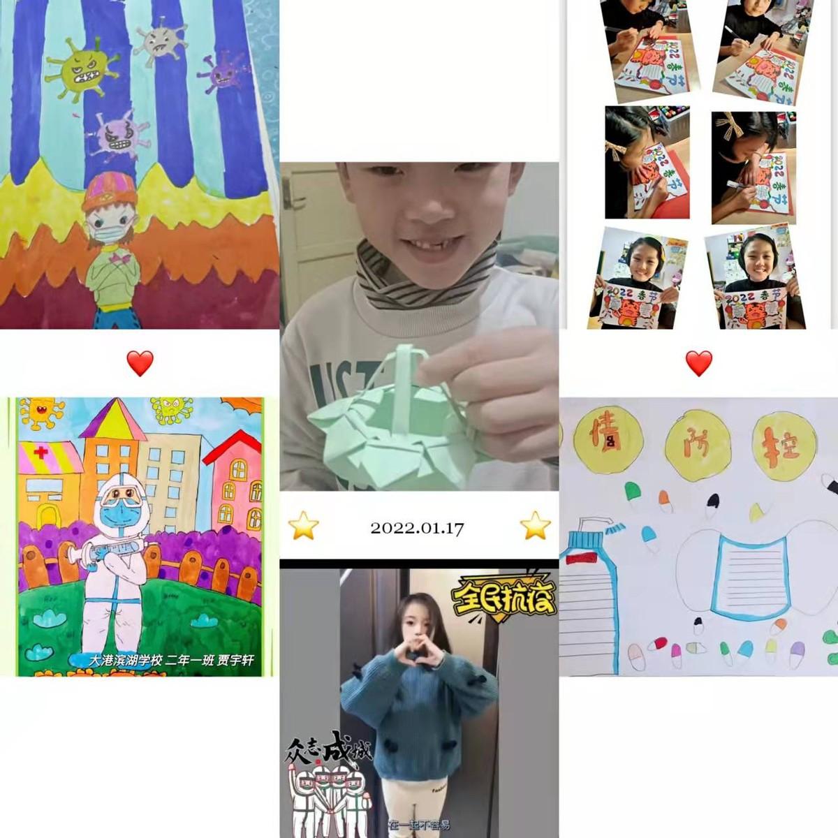 大港滨湖学校积极响应滨海新区教体局居家学习号召,向孩子们和家长们传递积极阳光的正能量,坚守一同抗疫的信心。号召学生们学习战斗在一线的防疫白衣天使和志愿者们,尤其是身边的榜样,以榜样为力量,致敬最美战疫情人。学生们用手语操、绘画、写作、唱歌等形式,为抗疫一线的“大白”们加油打气,学习他们不怕牺牲,舍小家为大家的精神,从小树立为国而生,为党而战的决心,当国家社会需要的时候,挺身而出,义不容辞。