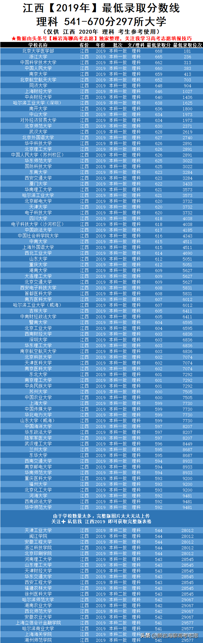 需要江西理科完整版数据或其他省份数据,可以私信留言!
