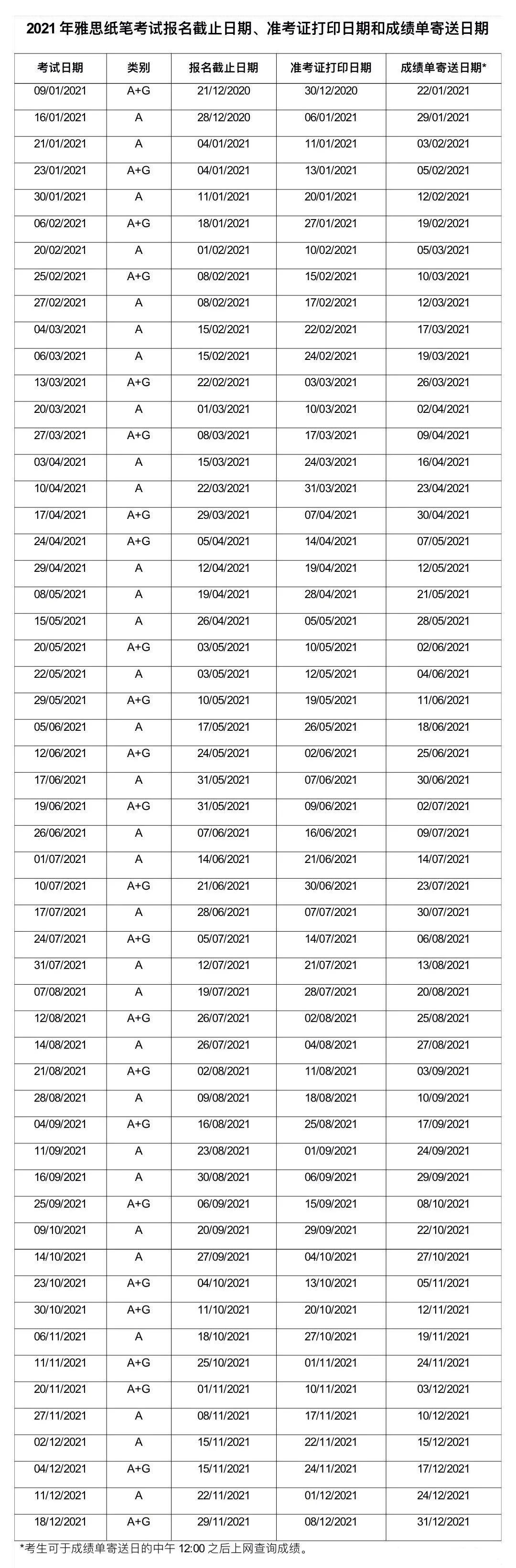 2021年1-6月雅思纸笔考试、1-3月用于英国签证及移民的雅思纸笔考试、1-3月雅思机考和用于英国签证及移民的雅思机考从即日起接受报名。2021年其它季度的雅思和用于英国签证及移民的雅思纸笔及机考考试安排年内会陆续公布。