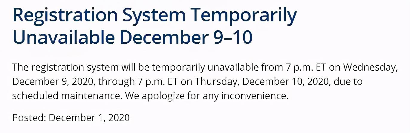 12月1日,ETS在官网发布重要消息:GRE在家考注册系统将在12月9日下午7点-10日下午7点(美国东部时间)暂停开放。
