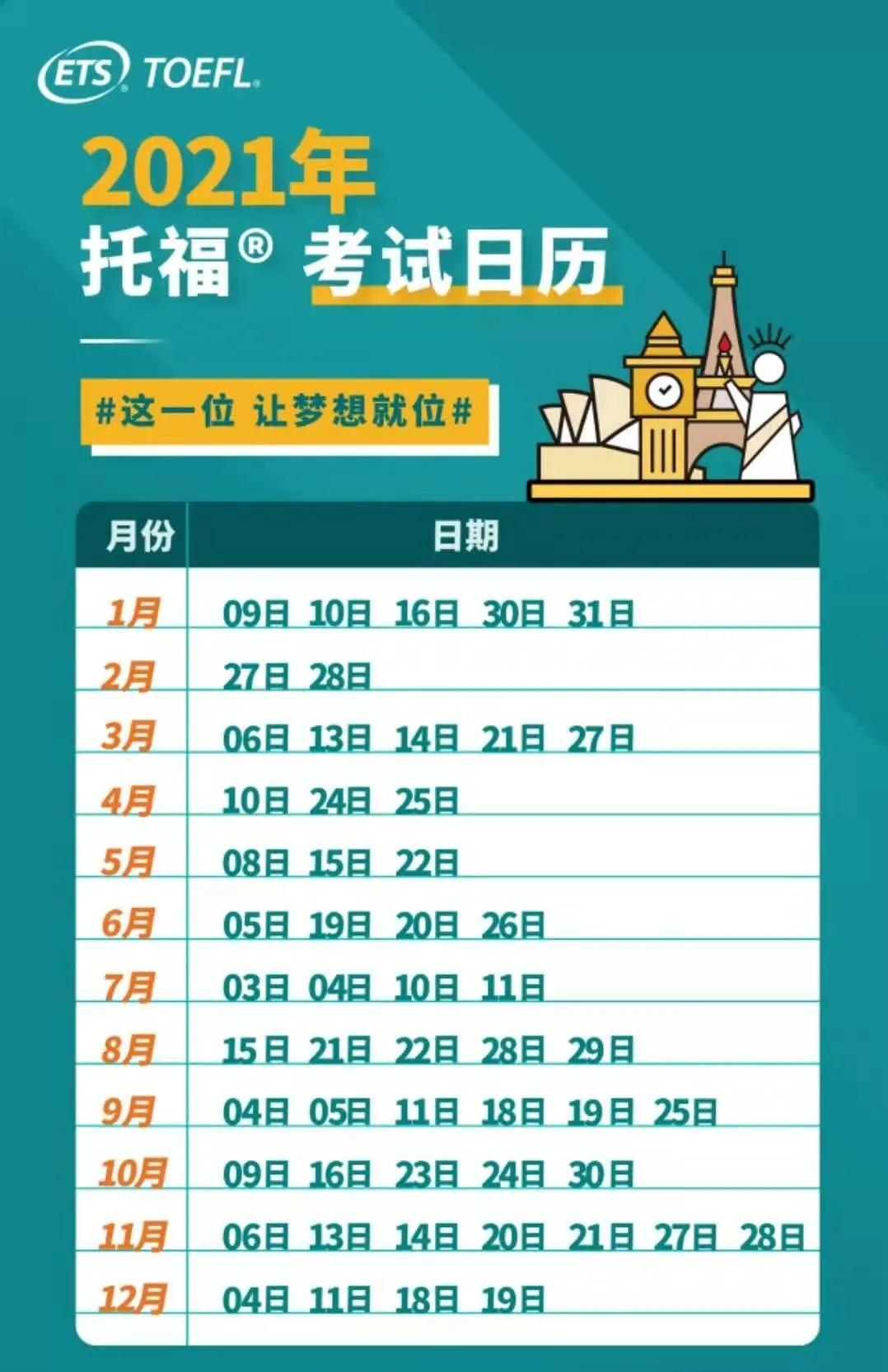 2021托福考试时间安排