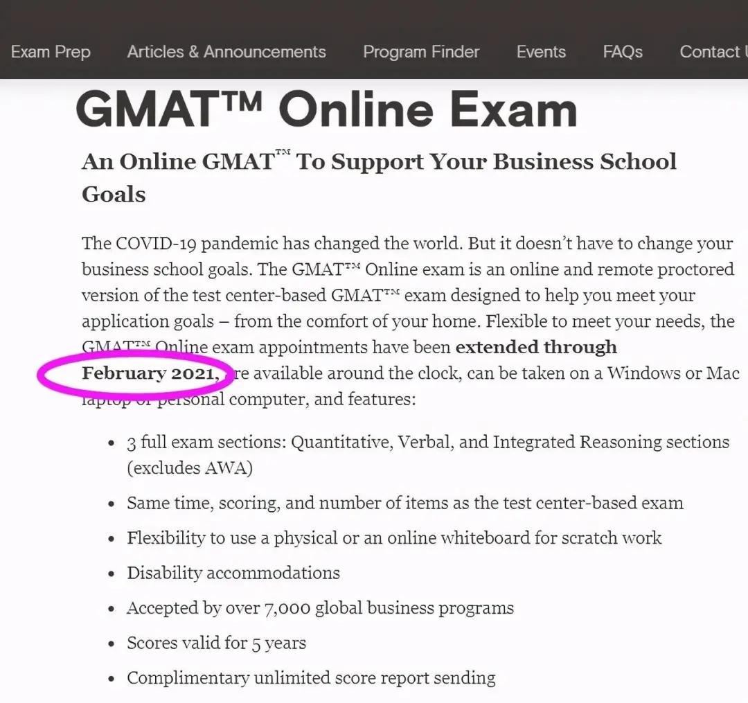 GMAT完整的21年考试时间仍未公布,近日GMAT考试官方更新了关于GMATonline在家考的有效期,通知延长到了2021年的2月。