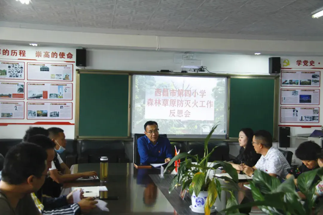 西昌市第四小学6月3日,组织召开森林草原防灭火专题学习反思会,全体行政人员参会。通过专题学习各级森林草原防灭火工作会议精神、认真反思工作中存在的差距,压实工作责任、强化工作落实、确保万无一失。