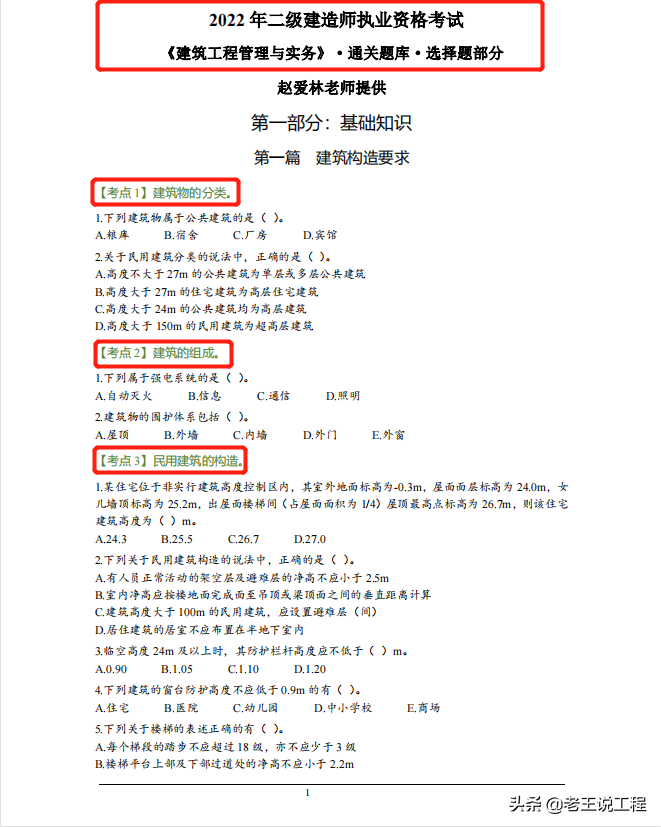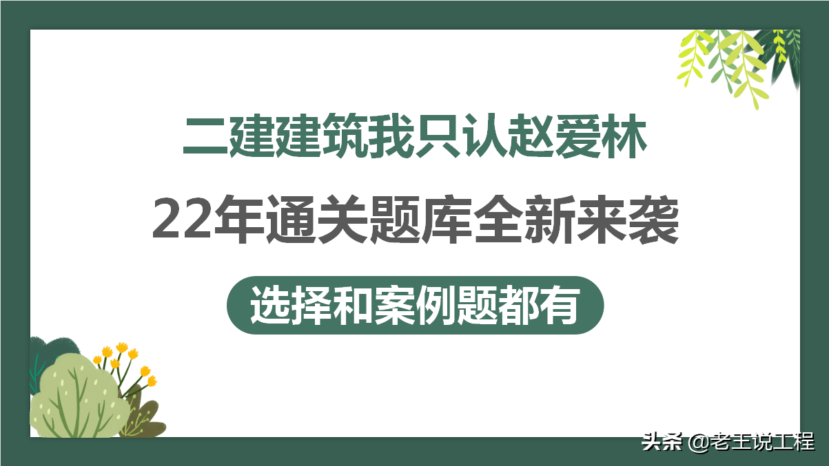 我过二建建筑,离不开赵爱林老师的案例精讲,今年他又带着22年通关题库来了,全新的考点梳理和习题总结,选择和案例题都有(完整版带答案解析),考二建的工友可得看看。