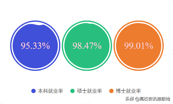 根据哈工大2019年毕业生就业质量报告,2019届本科毕业生就业率为95.33%、硕士毕业生就业率为98.47%、博士毕业生就业率为99.01%,就业率与学历层次成正比。