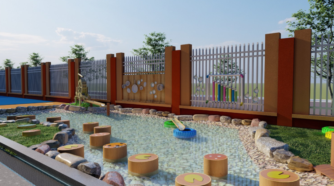 △此区域体现白马传说,师幼可以踩在木桩上,发出叮咚叮咚的泉水声