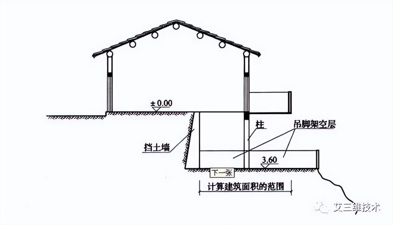 7、层高小于2.2米的深基础地下架空层,坡地建筑物吊脚架空间。