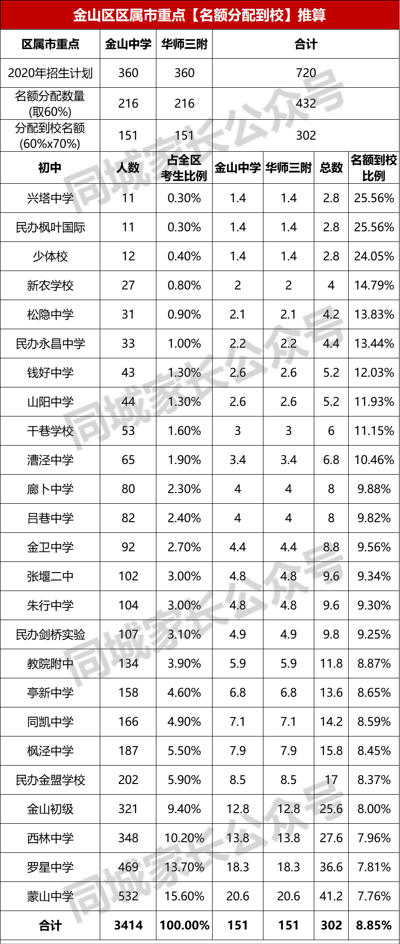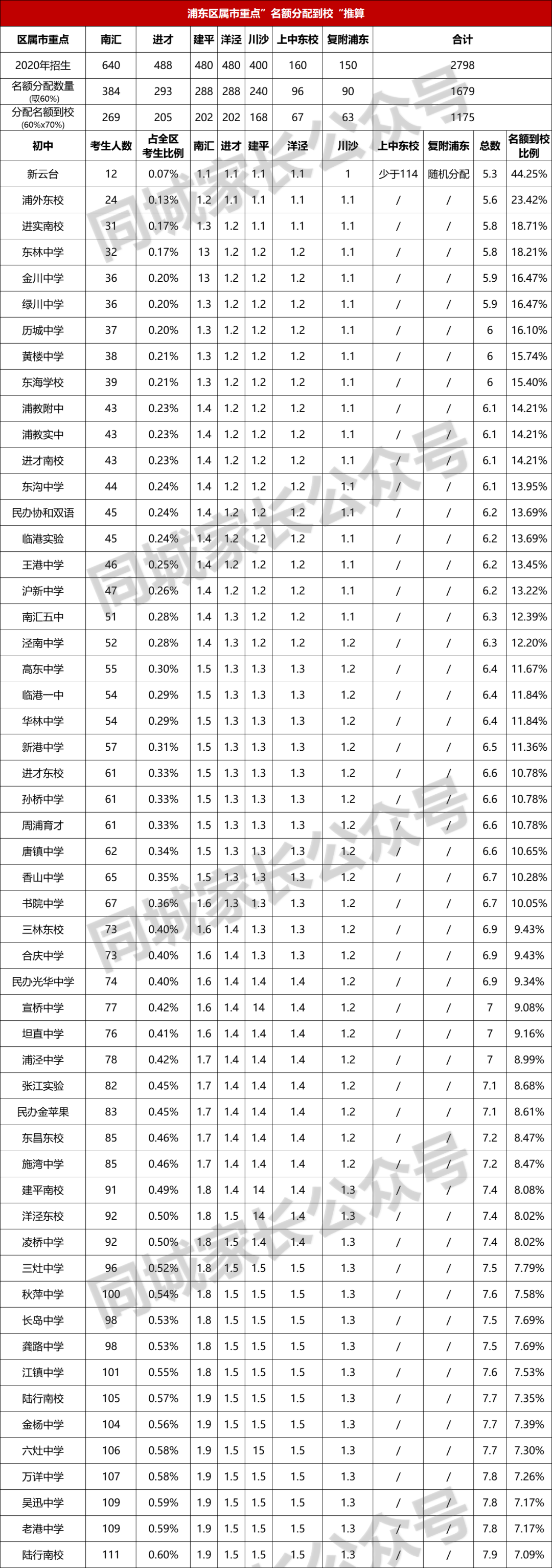 2022年上海中考将正式实施”名额分配“政策,那么,究竟每所初中能获得多少名额,今天我们帮大家推演一下。