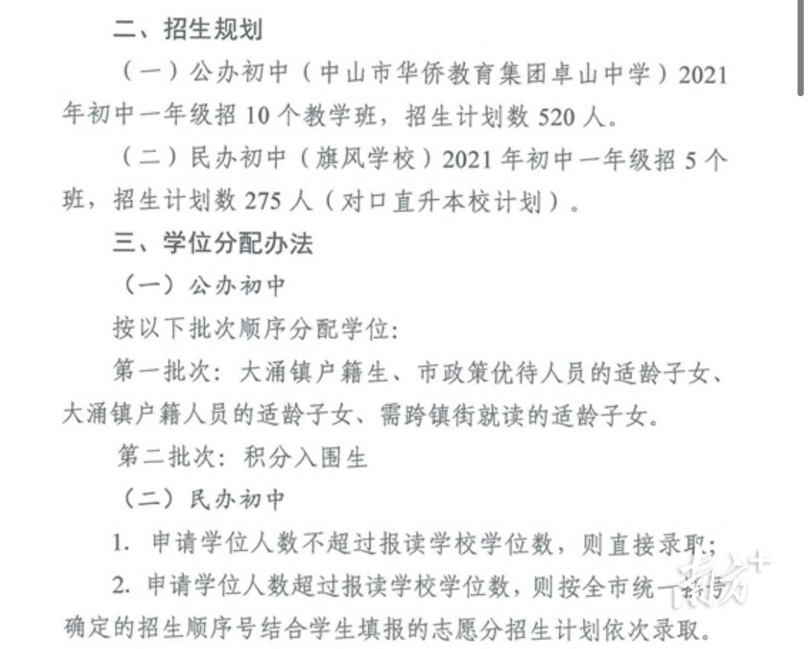 ③本市户籍跨镇街就读生、本镇户籍人员的非坦洲户籍适龄子女。根据适龄儿童本人或父母房产证所在地,按照学区划分办法申请入读学校。招生办根据申请情况安排学位,若申请人数多于学位数,通过抽签确定。
