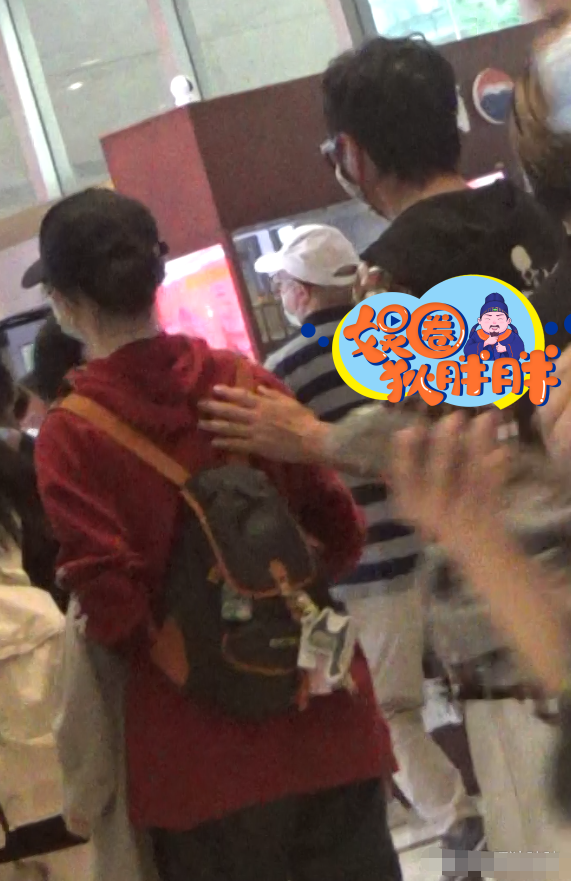 而他的女儿买宝瑶穿着一件红色上衣,搭配黑色短裤,用帽子和口罩将自己紧紧地包裹了起来,走路时也全程低着头,性格似乎有些内向。