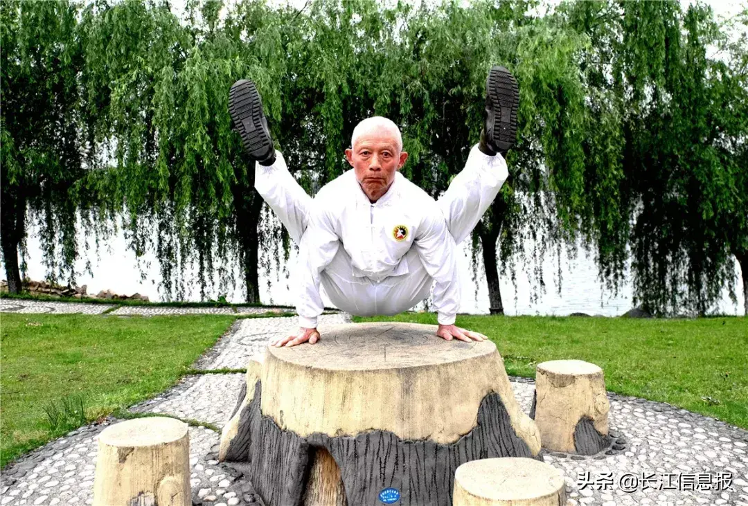 这位年逾古稀,被岳阳市民称为“岳阳牛人,练功达人,一指禅”的退伍老兵叫丁吉昌。