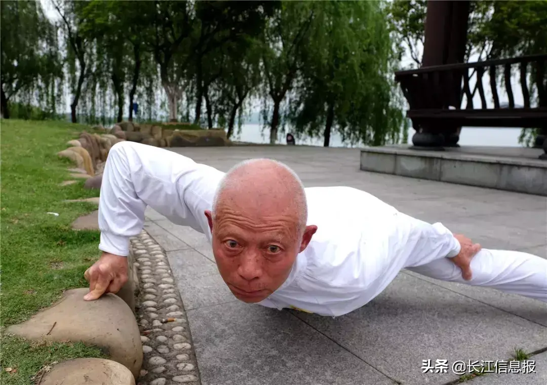 十年前的一个夏天,一名湖北籍老汉在金鹗山公园门前,摆地摊招收学徒,传授“祖传”单手能做50个俯卧绝技。丁吉昌听后认为十分滑稽。“我来练几下让你看看。”