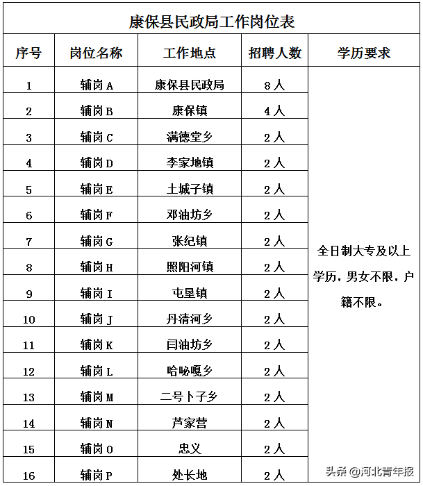 根据工作需要,康保众邦人力资源管理有限公司受张家口康保县民政局委托,公开招聘劳务派遣制工作人员40名。