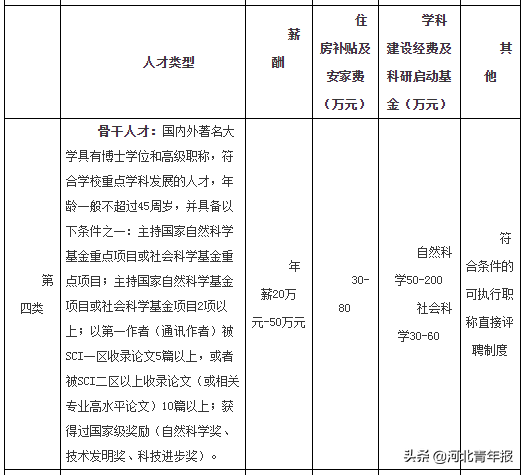 三、河北科技大学引进人才类型、待遇(全职)一览表