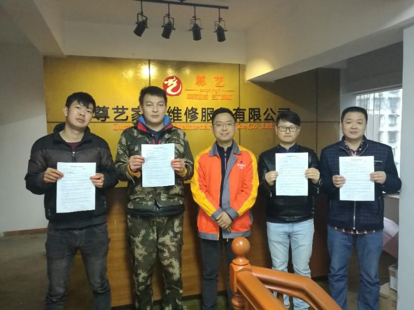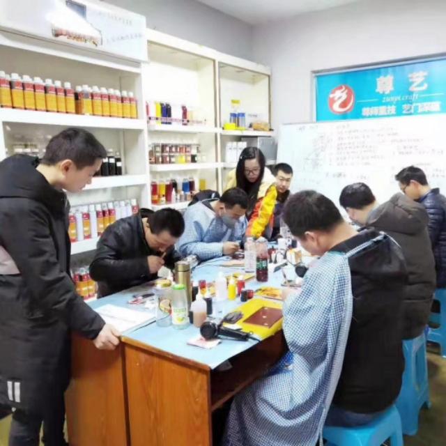 尊艺本身是专业的家具美容维修机构,做市场维修起家,现在自有70余人的维修团队,在市场上从业超过20年,积累了丰富的市场维修经验,不管是高难度的科技木系列的修复,还是常见的深色实木修复,尊艺在教学中都一一涉猎。后期也会安排一周左右的时间,让你们跟着维修师傅去工地上实地操作实习,这样可以更好的检验在校学习效果,毕业即可独立操作修复。