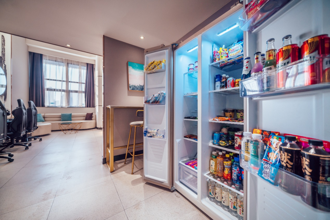 (图 / 爱电竞酒店房间内的零食区)