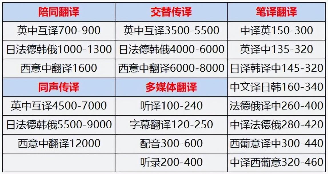 版权声明:我们致力于保护作者版权,注重分享,被刊用文章【专业翻译收费标准(专业翻译公司报价表)】因无法核实真实出处,未能及时与作者取得联系,或有版权异议的,请联系管理员,我们会立即处理! 部分文章是来自自研大数据AI进行生成,内容摘自(百度百科,百度知道,头条百科,中国民法典,刑法,牛津词典,新华词典,汉语词典,国家院校,科普平台)等数据,内容仅供学习参考,不准确地方联系删除处理!;