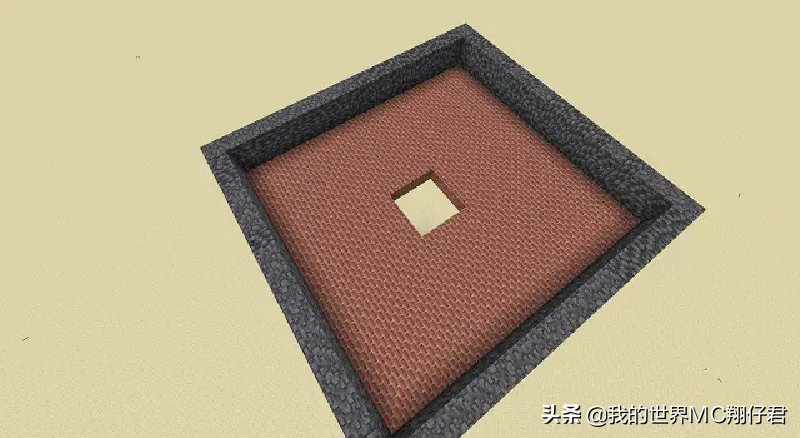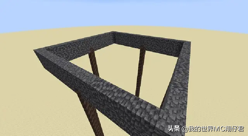 2.然后,在方块的帮助下连接四根柱子,在柱子的顶部创建一个3格高的墙。