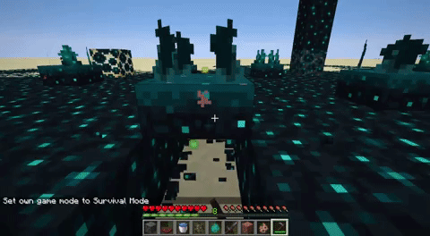 一切就绪后,你只需等待几分钟,怪物就会开始生成并坠落致死。每次怪物的倒下并死亡时,幽匿催发体将被激活并开始传播幽匿特征。你只需要等待一段时间,直到足够大的区域被幽匿方块覆盖。