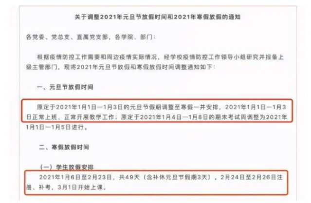 虽然部分高校已经公布了元旦放假时间以及寒假放假时间,但因为疫情情况多变,一些高校的寒假时间可能还会迎来一些新的调整。