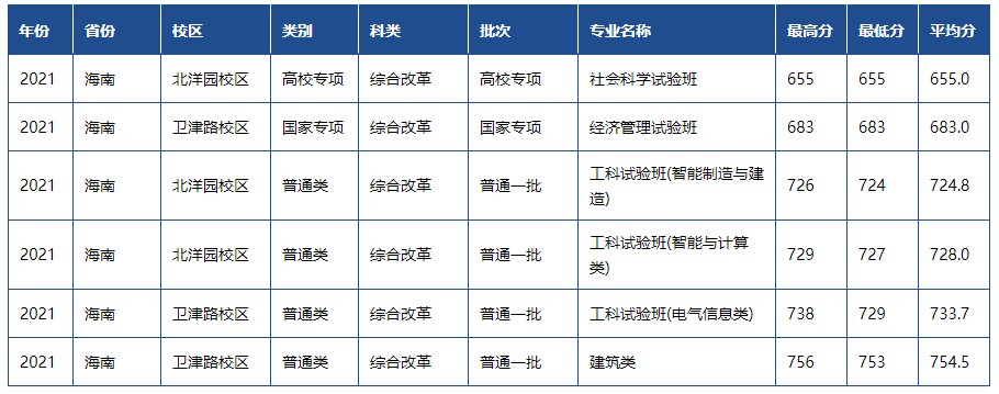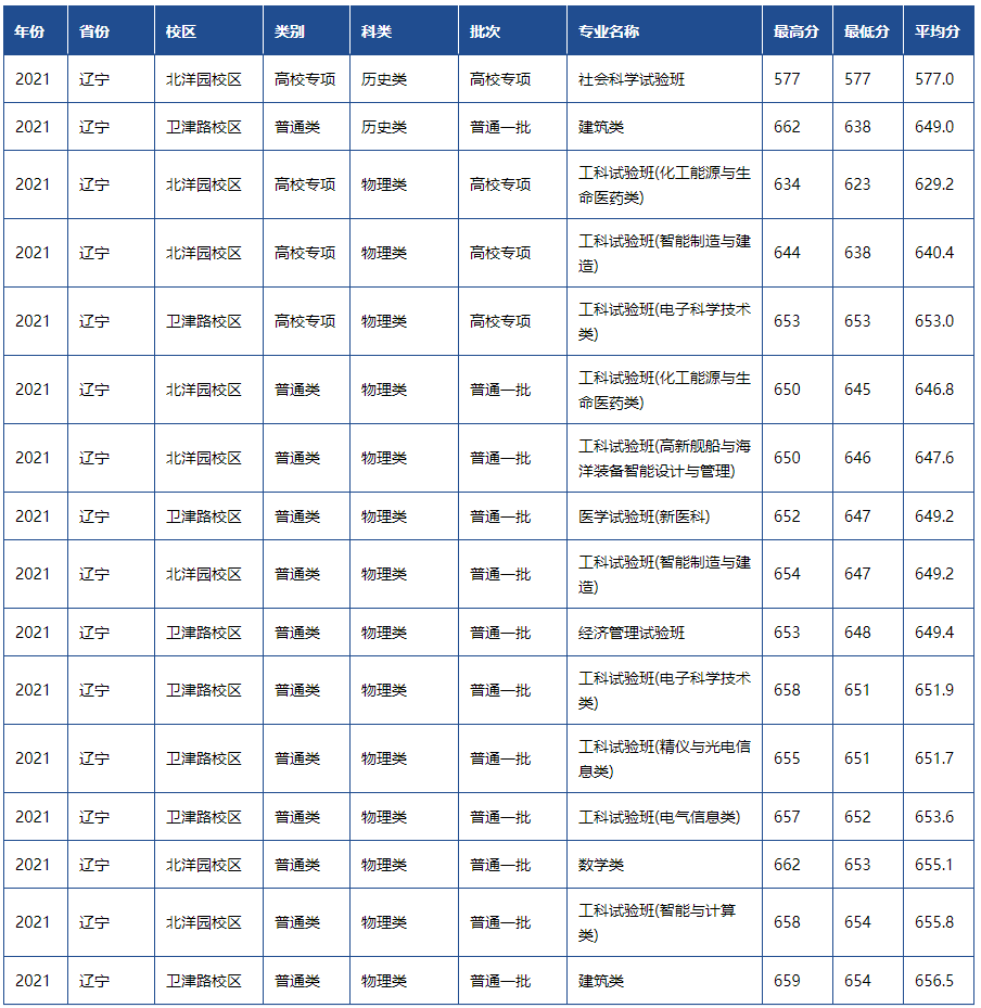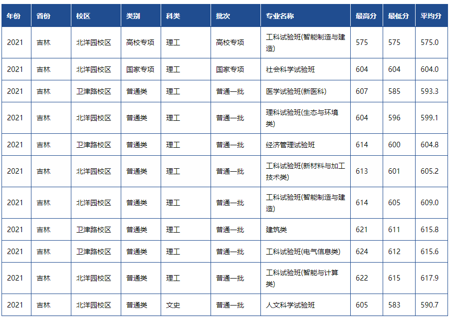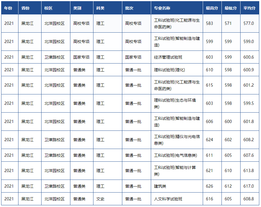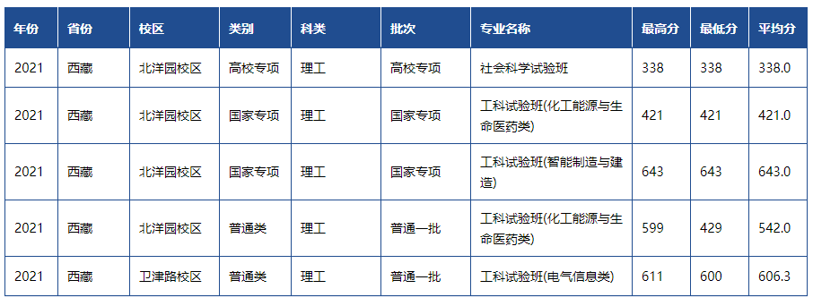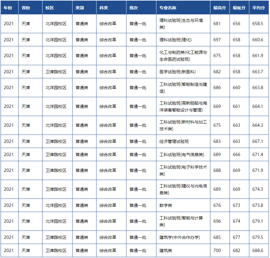 天津大学2021年各省市录取分数线