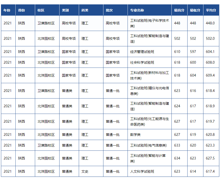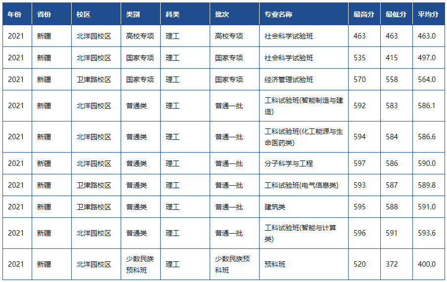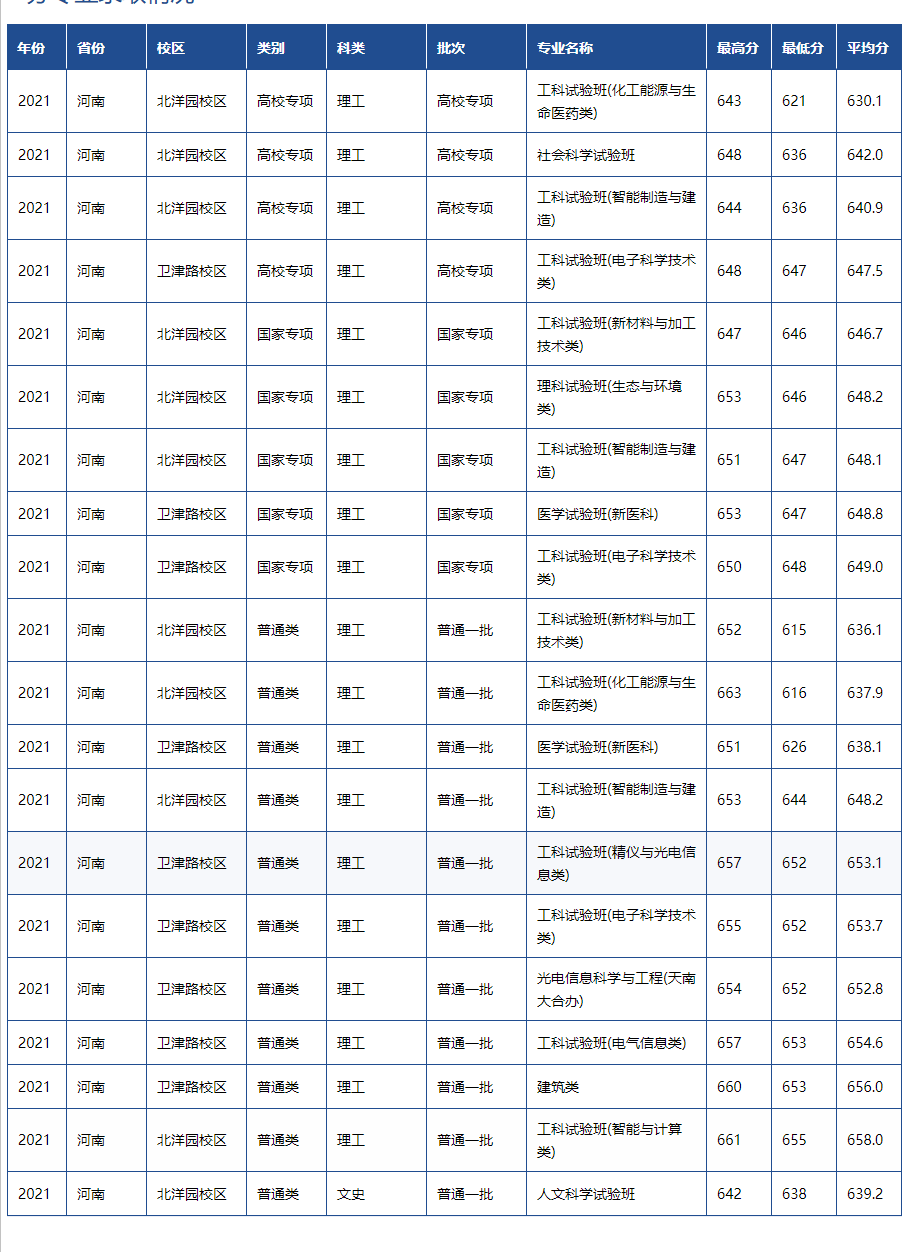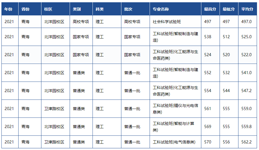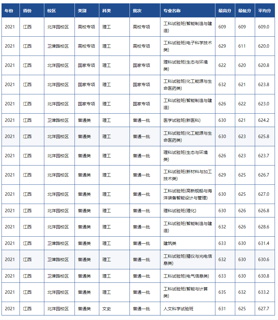 天津大学2021年各省市录取分数线