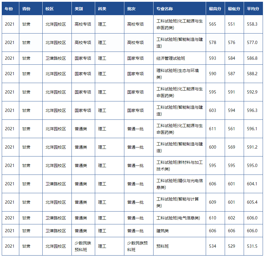 此外,天津大学的光电信息科学与工程(天南大合办)、分子科学与工程(天南大合办)、建筑学(中外合作办学)、环境设计、动画专业仍旧按照专业招生。