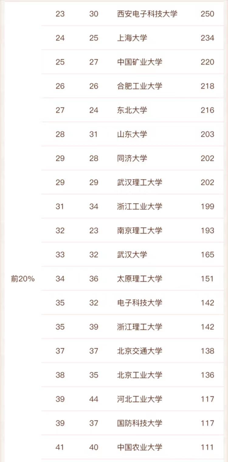 在这份榜单中,共计114所大学上榜,包括我国顶尖高校的上海交通大学、浙江大学、哈尔滨工业大学等,也包括非211工程大学的广东工业大学、燕山大学、浙江工业大学等。其中清华大学、西安交通大学、华中科技大学、上海交通大学居榜单前3名,是我国机械工程最好的4所大学,机械工程学科实力居全国各高校同类学科实力前2%。