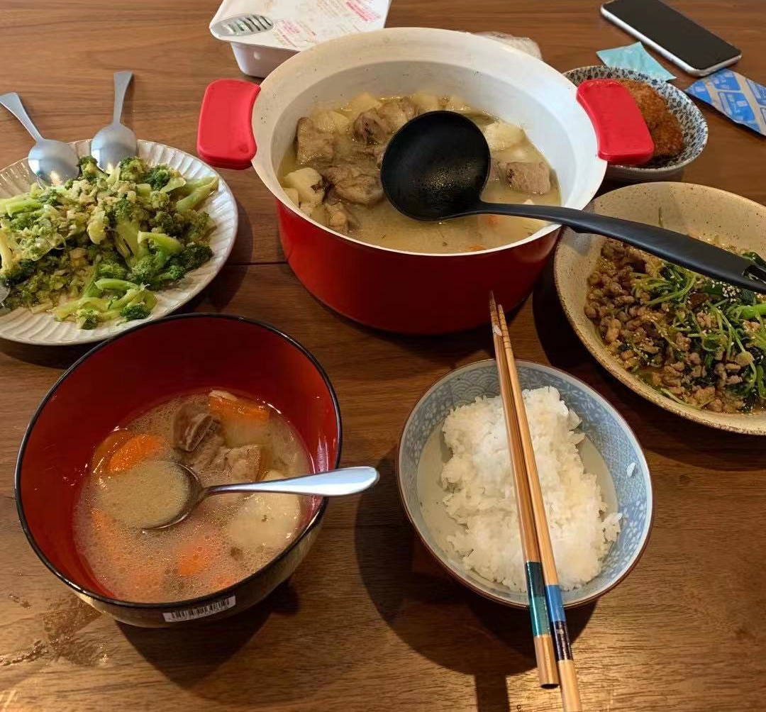 平时和室友一起自己在家做饭,偶尔(一个月3-4次)外食,一个月吃饭大概需要3w日元;