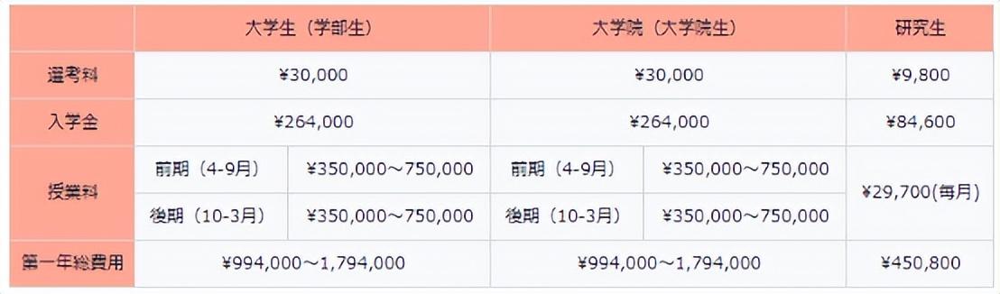 国公立费用较低,差不多一年4.3w人民币左右;而私立学校费用较贵,学校间差异也较大,差不多一年5w-10w人民币左右。但是有很多私立学校也有很大的学费减免力度和财团提供的奖学金可以申请。