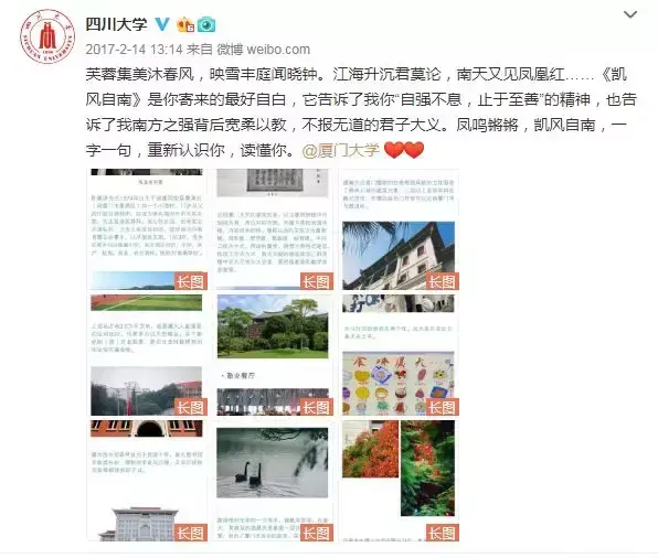 四川大学与厦门大学,相传缘起于一位带着学生证去双方高校打卡的学生,在发布微博后,引起了两校官博互动,此后便一发不可收拾……