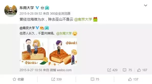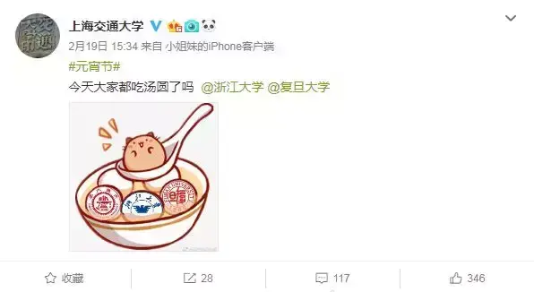 2019年元宵节,复旦大学官博发布微博并同时@了上海交通大学与浙江大学官博,从而让三所高校的“虐恋CP”浮出水面。有网友评论说:这是什么绝世三角恋?