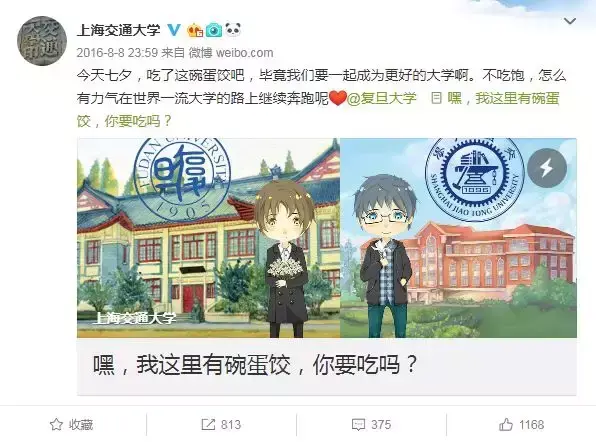 “旦交”CP的画风与“清北CP”截然不同,一开始“主动”地反而是以理工科见长的上海交通大学。