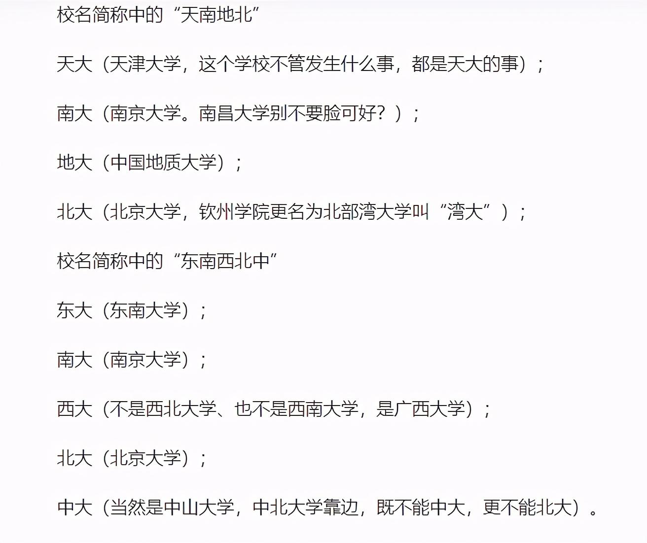 如果两所或几所学校实力相当,那么大家都叫同一个简称也没什么,尤其是位于不同城市的高校,在当地人看来,简称很显然指的就是自己所在地的大学名称。