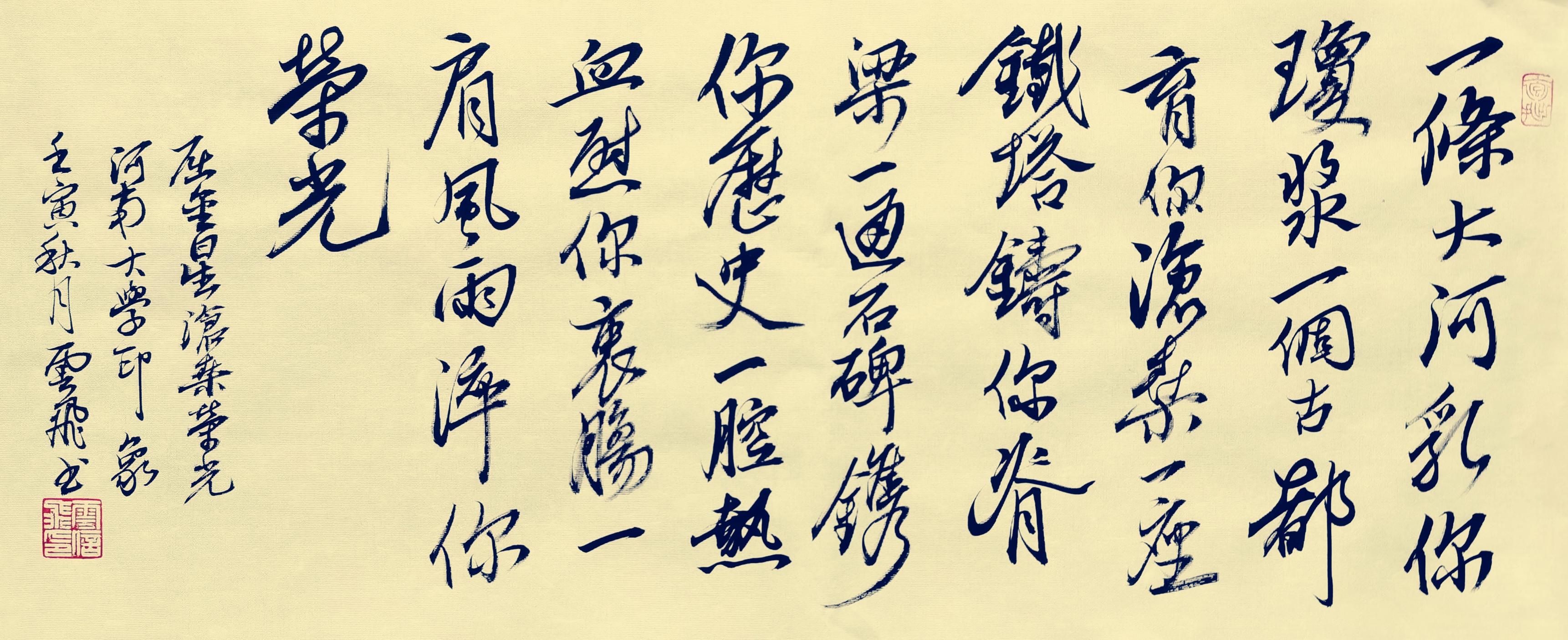 金秋时节,北京河南籍诗人、辞赋家屈金星,书法家、学者孟云飞联袂创作诗歌书法作品《沧桑•荣光》献礼河南大学110周年校庆。