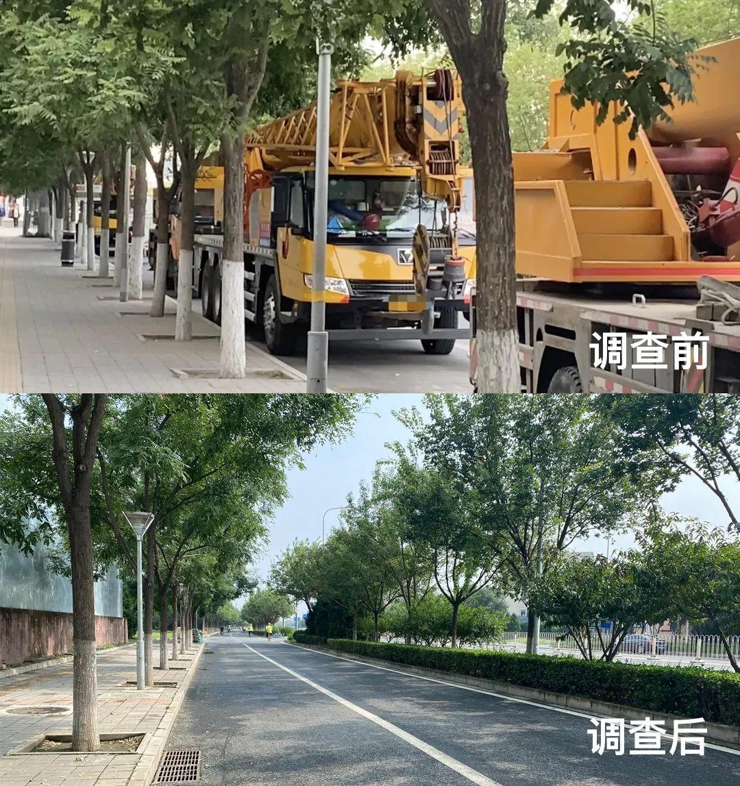节目播出后,北京市交管局丰台交通支队丰台区卢沟桥乡、卢沟桥村综治工作人员先后开展多次专项整治,对违停车辆进行劝离和处罚。丰台交通支队卢沟桥大队副大队长王勇表示,支队主动联合属地综治部门开展融合执法专项整治。6月17日,执法人员首先通过挪车电话、车牌信息核查,联系司机对其占用非机动车道违法停车行为进行批评教育,并劝其驶离,当天劝驶离14辆工程车。支队持续开展了一个星期的专项整治行动,共出动警力24人次,清理相关车辆5辆,拖移1辆,目前这类违法行为已经基本不存在。