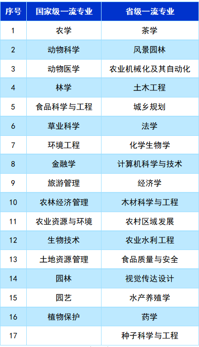 2017年,学校入选首批国家“双一流”建设高校,是全国农林院校中首批入选的9所高校之一。