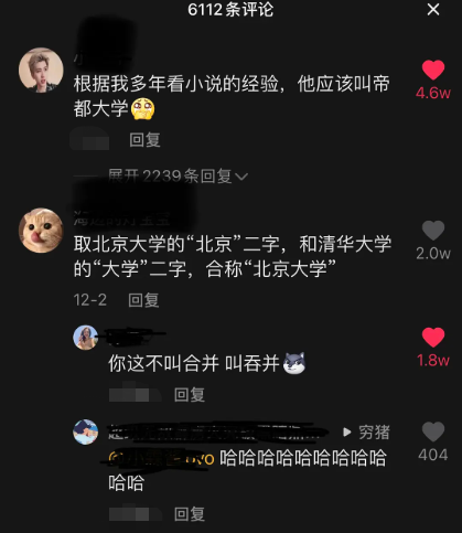 这位网友是这样说的,因为北京大学和清华大学地位不分上下,所以取北京大学的北京二字和清华大学的大学二字合称为北京大学,好家伙,这下子清华大学直接就没有姓名了,所以爱会消失的,对吗?