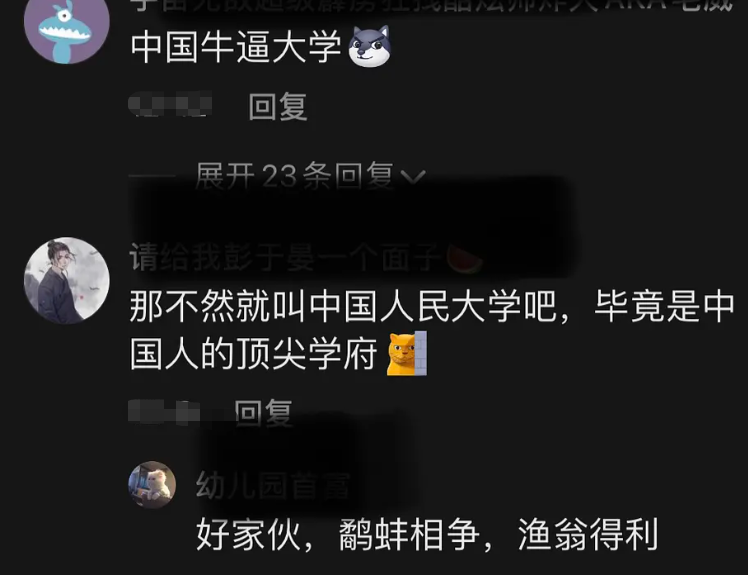 当然最过分的脑洞还不止于此,因为网友发表了自己的亲戚看法,他说不然就叫中国人民大学嘛,毕竟两所大学合起来就是中国人的顶尖学府。