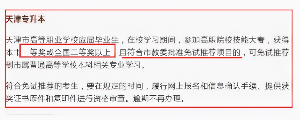只要学生在校期间获得过一些竞赛的奖项,就可以获得“免试升本”的机会,但是会对专业的选择上有所限制,要求是与竞赛专业相关的专业才可以。