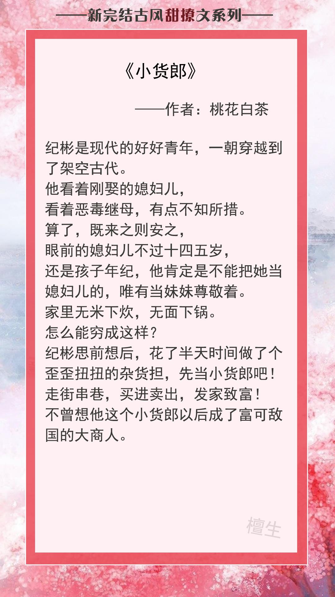 简评:男主是穿越来的农家穷小子,自幼丧母,继母不慈,分家只分了间茅草屋自立门户。女主是男主的小媳妇,勤劳能干,坚韧能吃苦。男主初来乍到就面临饥不果腹的窘境,为了生计,他挑起杂货担做小货郎。