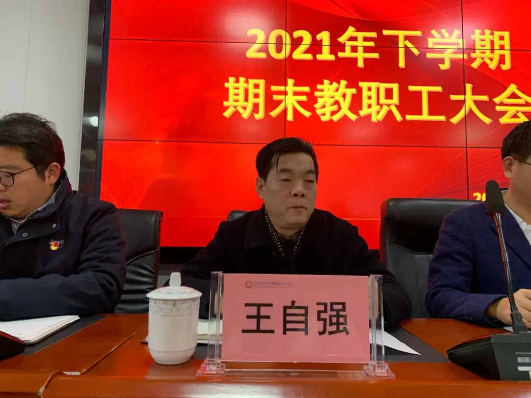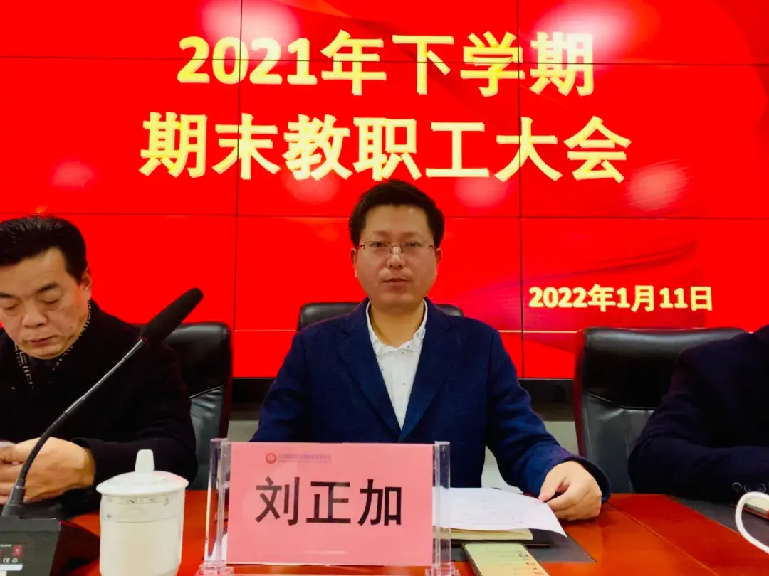 刘正加校长从党的教育方针、法律法规、学校文化、发展方向进行深入剖析,从学校师资提升、专业设置、德育管理、教育教学、第二课堂等方面进行工作总结,提出“有付出才有回报,有团结才会有成果”“既要埋头做事,也要抬头看路”的指导意见,希望全体教职工在2022年继续增强主人翁意识,共同为创办经开“平安校园”“文明校园”“品质学校”而努力奋斗。